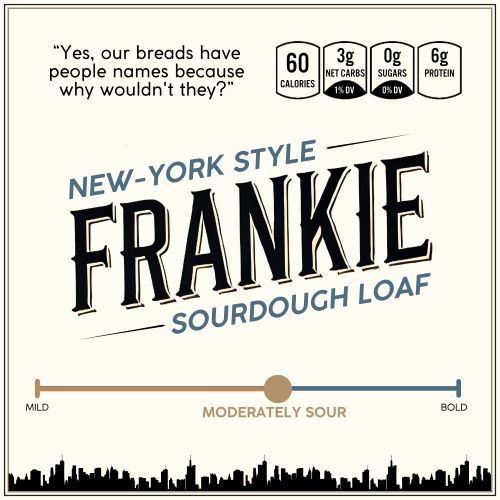 - HIGHEST QUALITY – Frankie, our New York-style sourdough loaf, is handmade and baked fresh twice a week in our local bakery. With 100% non-GMO ingredients, our bread boasts a signature moderate sour flavor, complemented by a deliciously crispy crust and a soft, chewy inside. We prioritize clean label ingredients with no artificial additives, ensuring an authentic, natural taste.