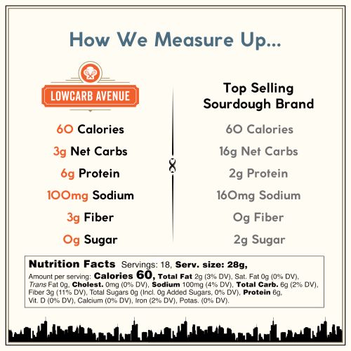 • HIGHEST QUALITY – Frankie, our New York-style low carb sourdough bread, is handmade and baked fresh twice a week in our local bakery. With 100% non-GMO ingredients, our bread boasts a signature moderate sour flavor, complemented by a deliciously crispy crust and a soft, chewy inside. We prioritize clean label ingredients with no artificial additives, ensuring an authentic, natural taste.