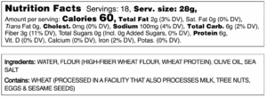 Water, Flour (High-Fiber Wheat Flour, Wheat Protein), Olive Oil, Sea Salt